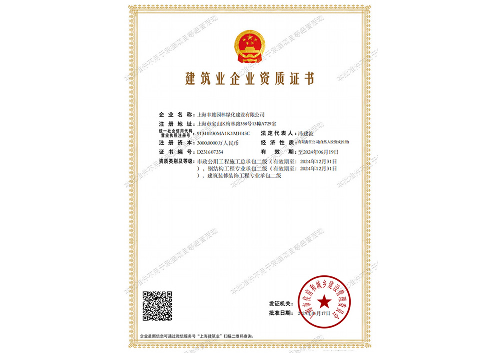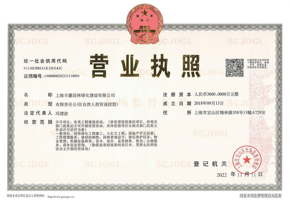 上海豐麓園林綠化建設(shè)有限公司注冊(cè)資金3000萬(wàn)元,總部位于上海,成立了第一區(qū)域(上海、廣西)工程管理部;第二區(qū)域(江蘇、西北)工程管理部;第三區(qū)域浙江工程管理部。公司具備園林綠化資質(zhì)、市政工程二級(jí)資質(zhì)、建筑裝飾裝修二級(jí)資質(zhì)、鋼結(jié)構(gòu)二級(jí)資質(zhì),擁有多支園林綠化和市政建設(shè)的專(zhuān)業(yè)隊(duì)伍并獲得市級(jí)高新和專(zhuān)精特新技術(shù)企業(yè)認(rèn)證。